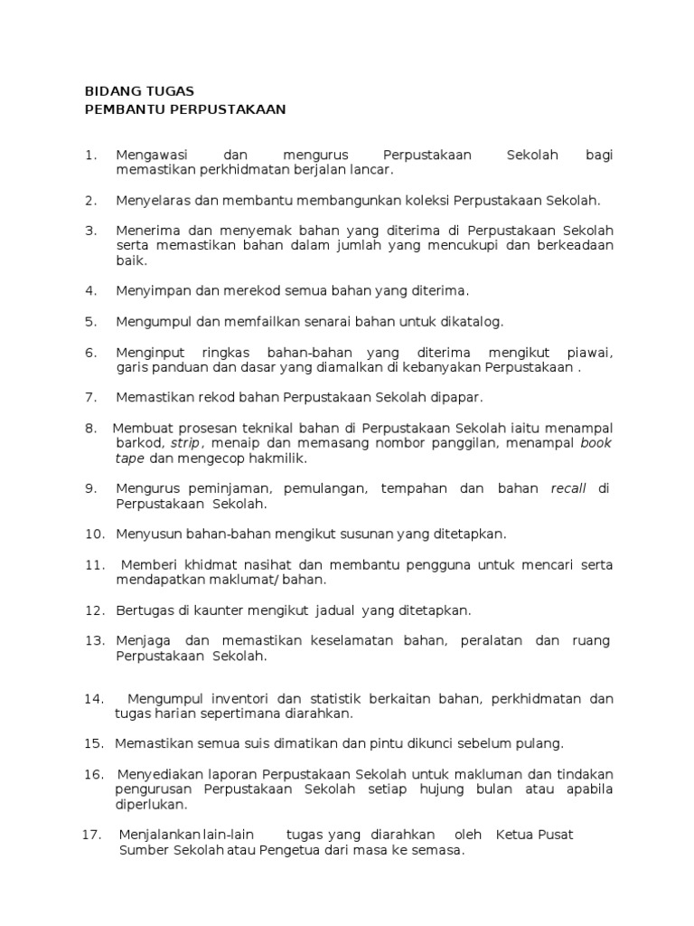 Bidang Tugas Pembantu Perpustakaan Pdf