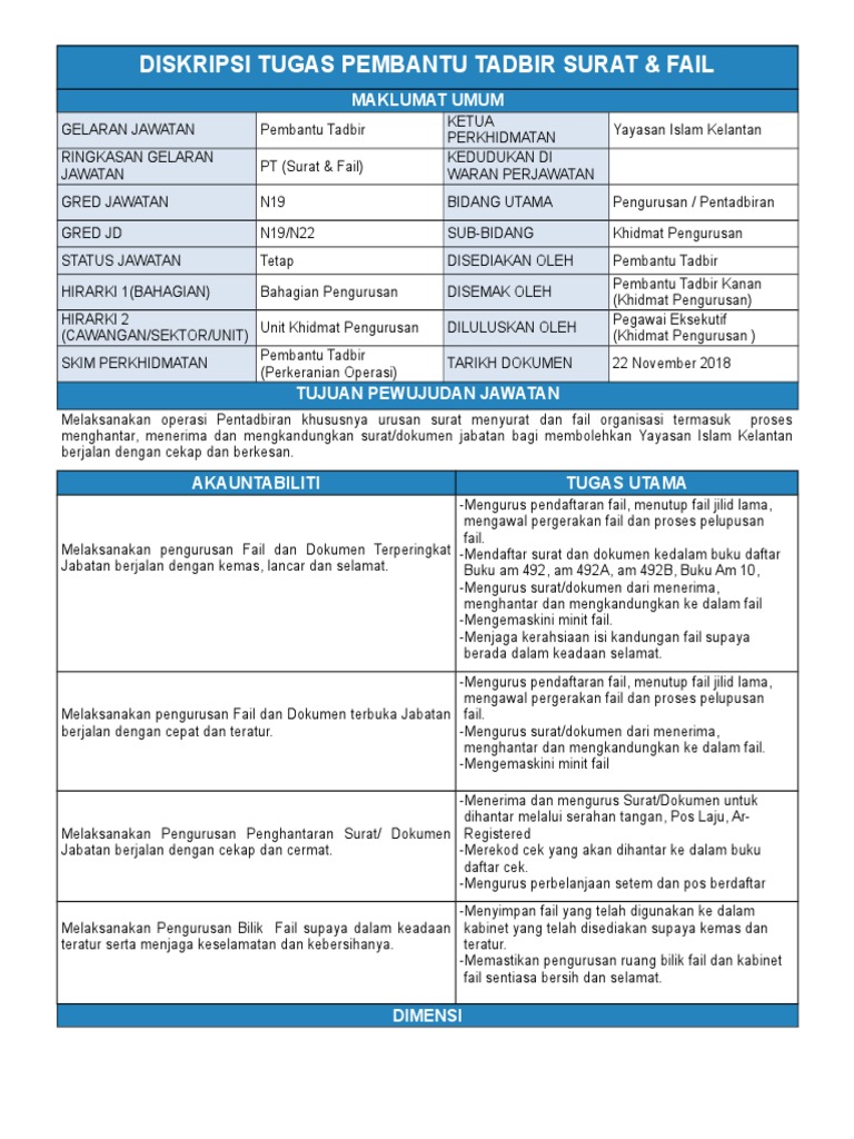 Contoh Deskripsi Tugas Pembantu Tadbir Perkeranian Operasi Pdf